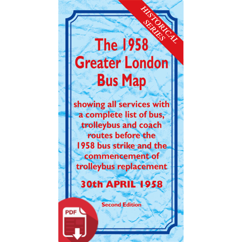 The 1958 Greater London Bus Map is dated 30th April 1958 and shows all services with a complete list of bus, trolleybus and coach routes before the 1958 bus strike and the commencement of trolleybus replacement.