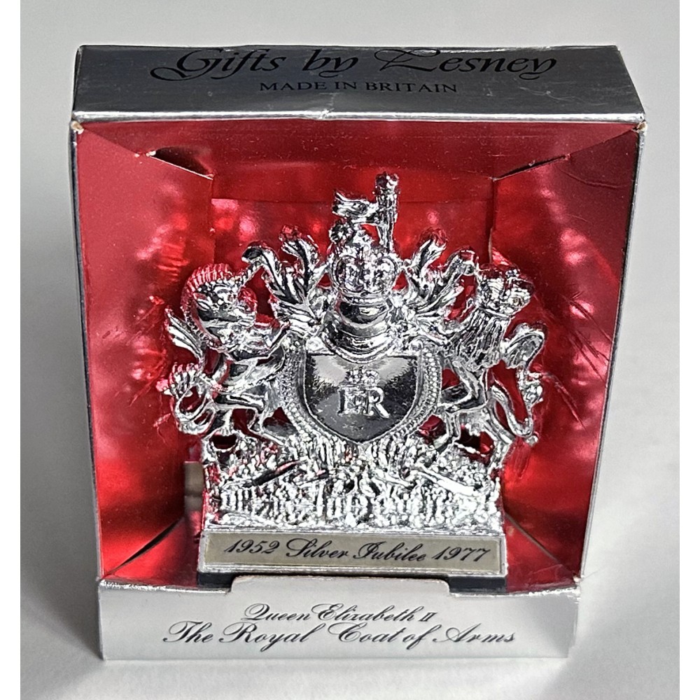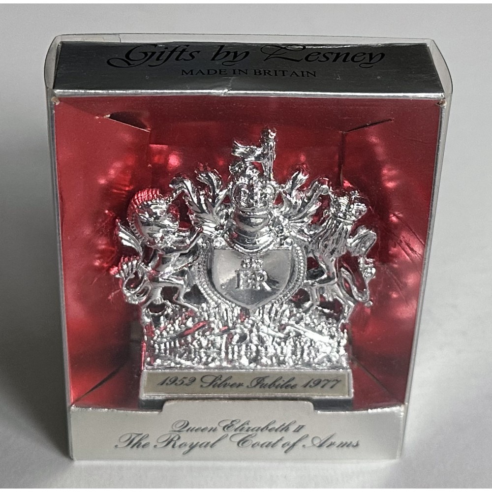 This Lesney Matchbox box is a collectable item that features the Queen Elizabeth II Coat of Arms and commemorates her Silver Jubilee in 1977, and comes in its original box, making it a great addition to any collection of British royalty memorabilia.