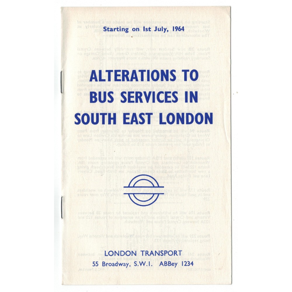 • Product Code: London Transport Alterations booklet South East London 1/7/64