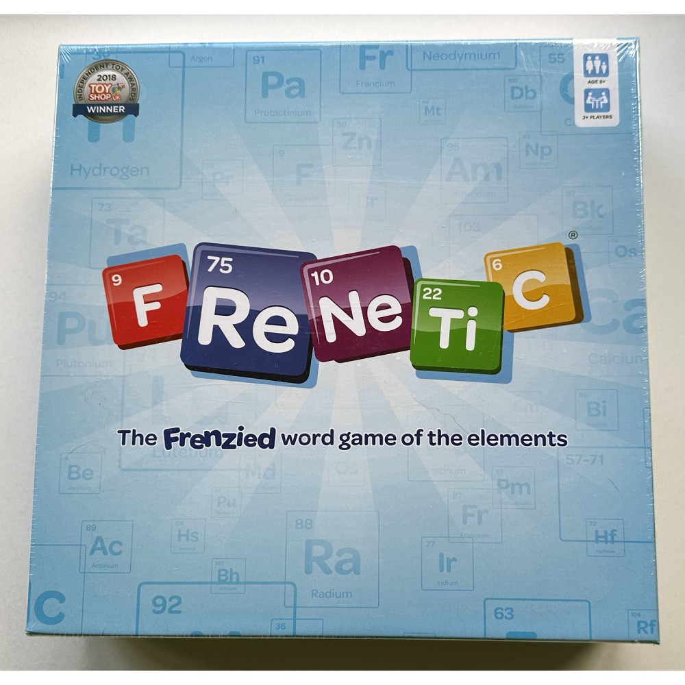 ORaNGeS, BaCoN, BeEr... Just some of the 10, 000+ words you can make using letters from the element symbols! Everyone plays this board game at the same time, combining strategy and skill with an element of luck.. Quick to set up and with easy-to-follow rules, FReNeTiC is a fast-paced race to make words... The Atomic numbers then become your points. Play FReNeTiC with friends and family right away! Each game lasts between 15 & 45 minutes – it’s up to you… Change the target score, change the game! For 2 or more players, age 8+. And no... You don’t need to be a GeNiUS to play!