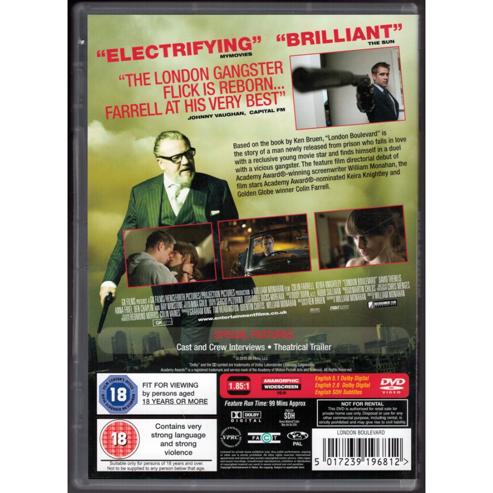 Based on the book by Ken Bruen, "London Boulevard" is the story of a man newly released from prison who falls in love with a reclusive young movie star and finds himself in a duel with a vicious gangster. The feature film directorial debut of Academy Award-winning screenwriter William Monahan, the film stars Academy Award-nominated Keira Knightley and Golden Globe winner Colin Farrell.